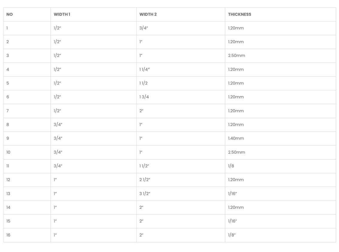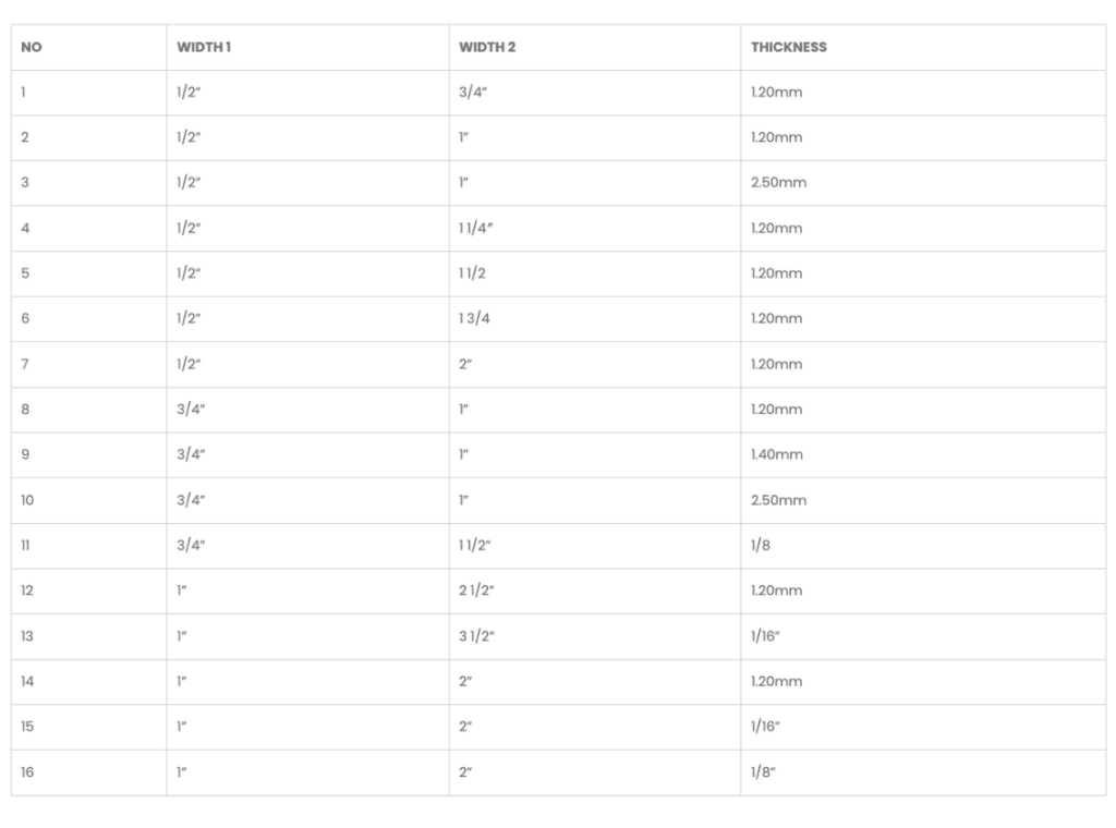 31/2” x 1/2”12.70mmx 12.70mm1.00mm
